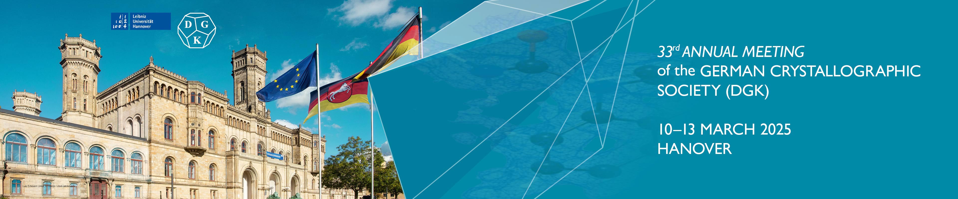 November 13, 2025 by « All Events This event has passed. 33rd Annual Meeting of the German Crystallographic Society March 10 - March 13 « Hercules European School 2025 International School on Electron Crystallography 2025 – Erice, Italy » Add to calendar Google Calendar iCalendar Outlook 365 Outlook Live Details Start: March 10 End: March 13 Event Categories: National, Other Meetings Website: https://dgk-conference.de/ Venue Leibniz University Hanover Callinstrasse 3-9 Hannover, 30167 Germany + Google Map Organizer Andreh Munla Ali Email ed.su1763036151tnevn1763036151oc@il1763036151a-aln1763036151um.he1763036151rdna1763036151