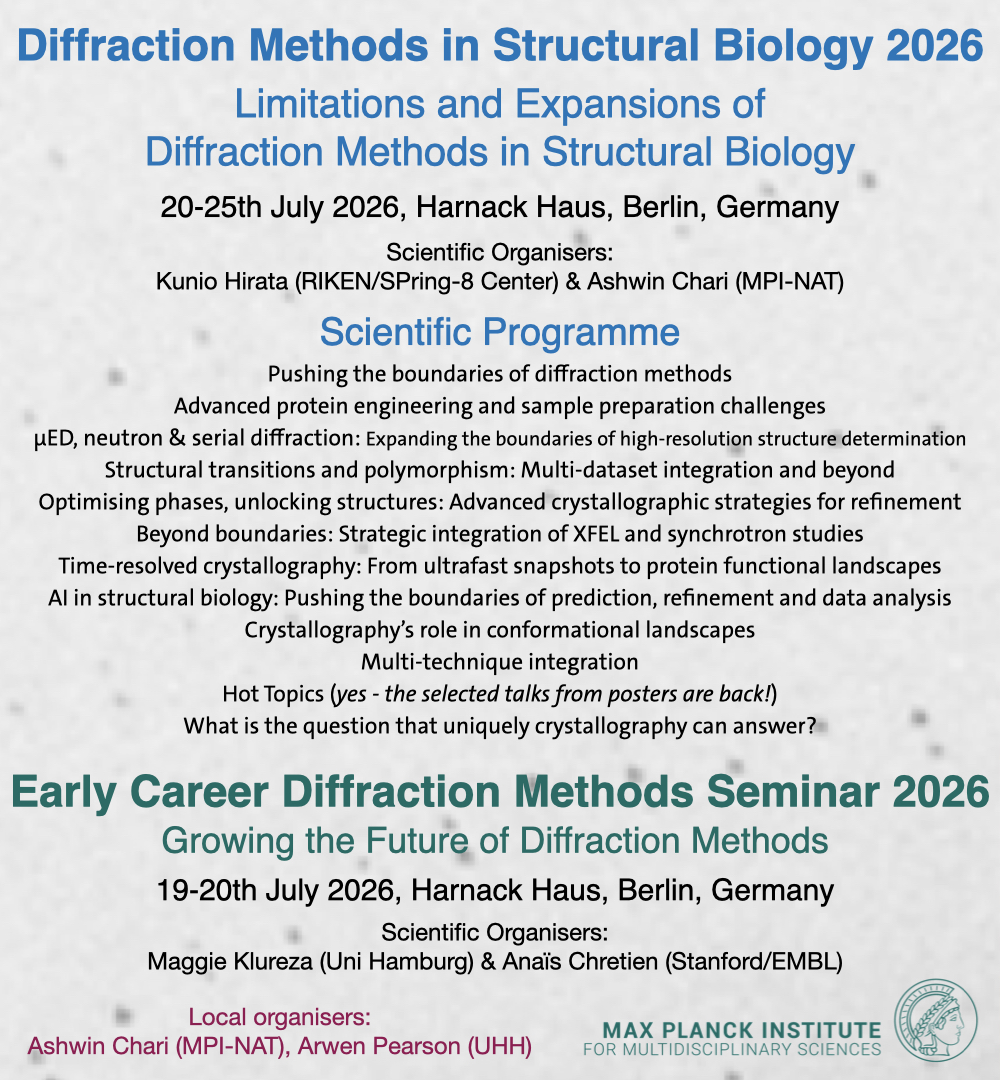 We are pleased to announce that registration is now open for Diffraction Methods in Structural Biology 2026 (DiffMet2026). The registration deadline is April 30th, 2026.