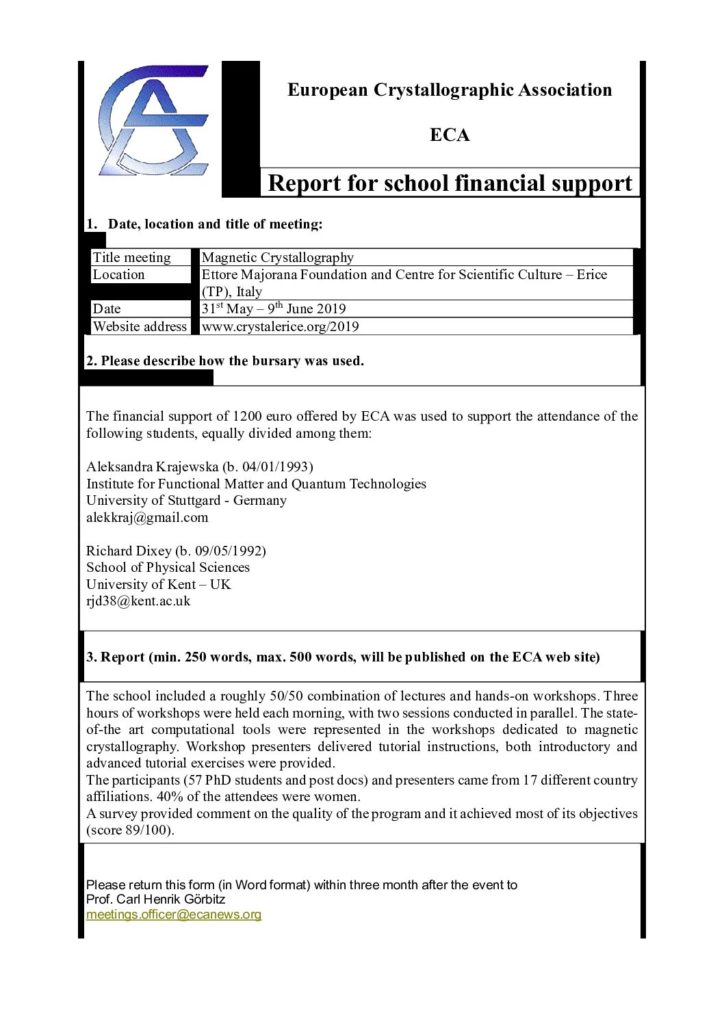 53rd Course of the International School of Crystallography – Magnetic Crystallography